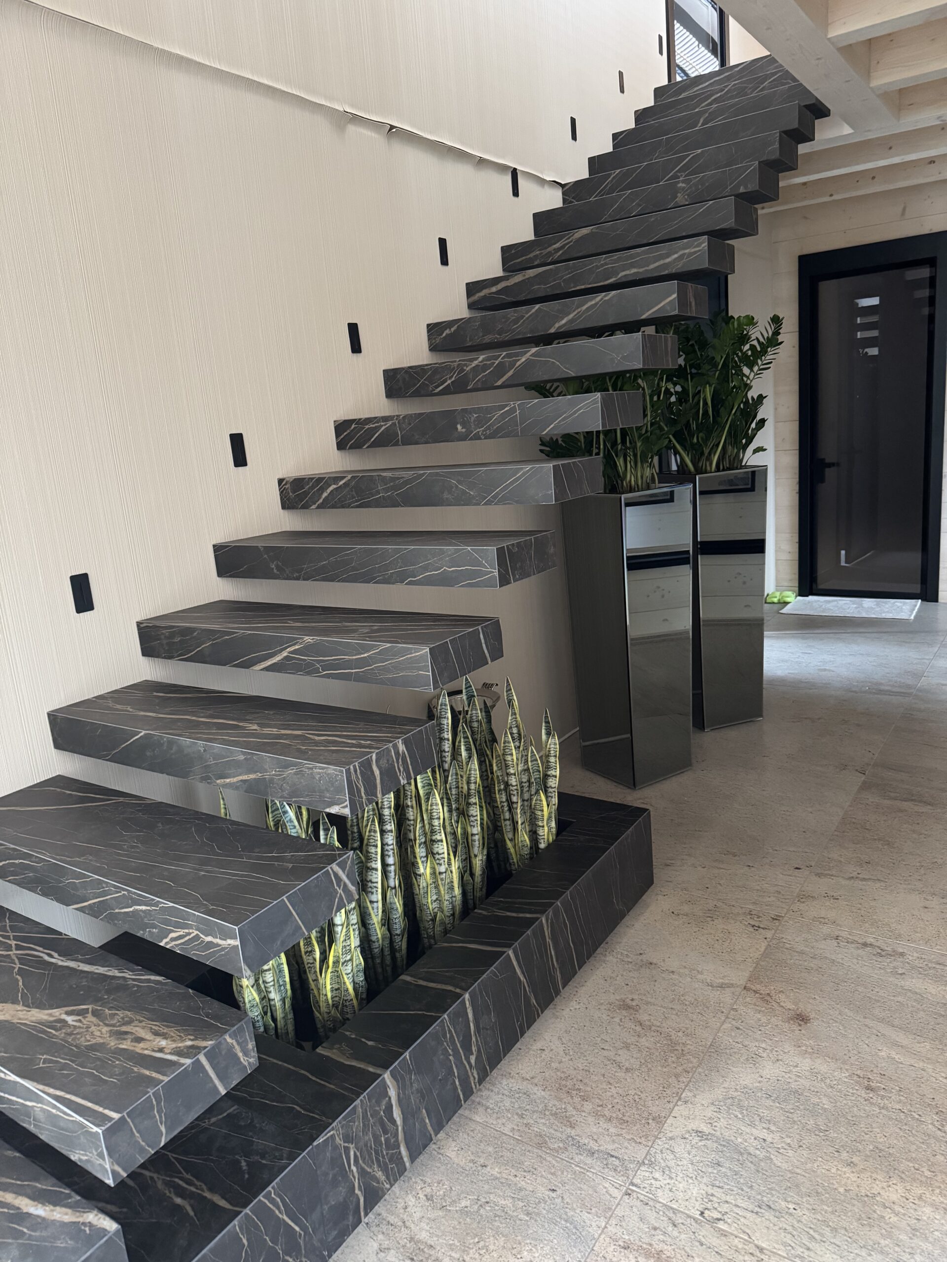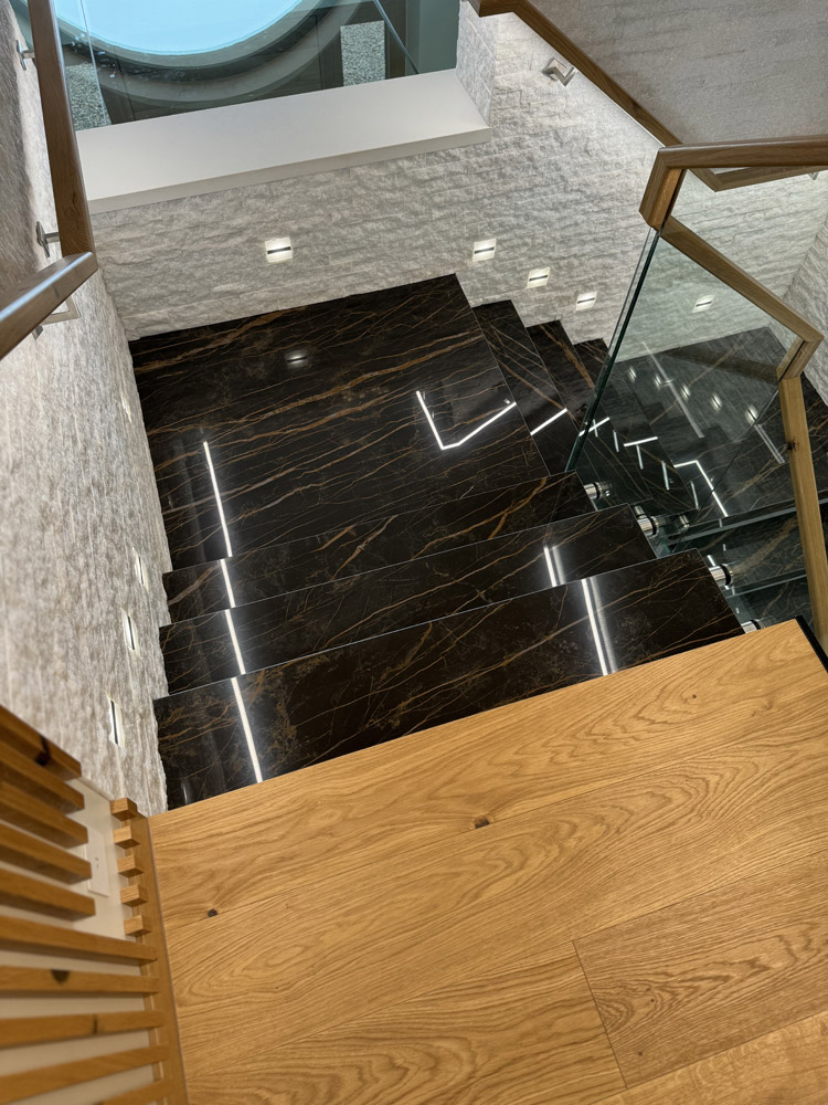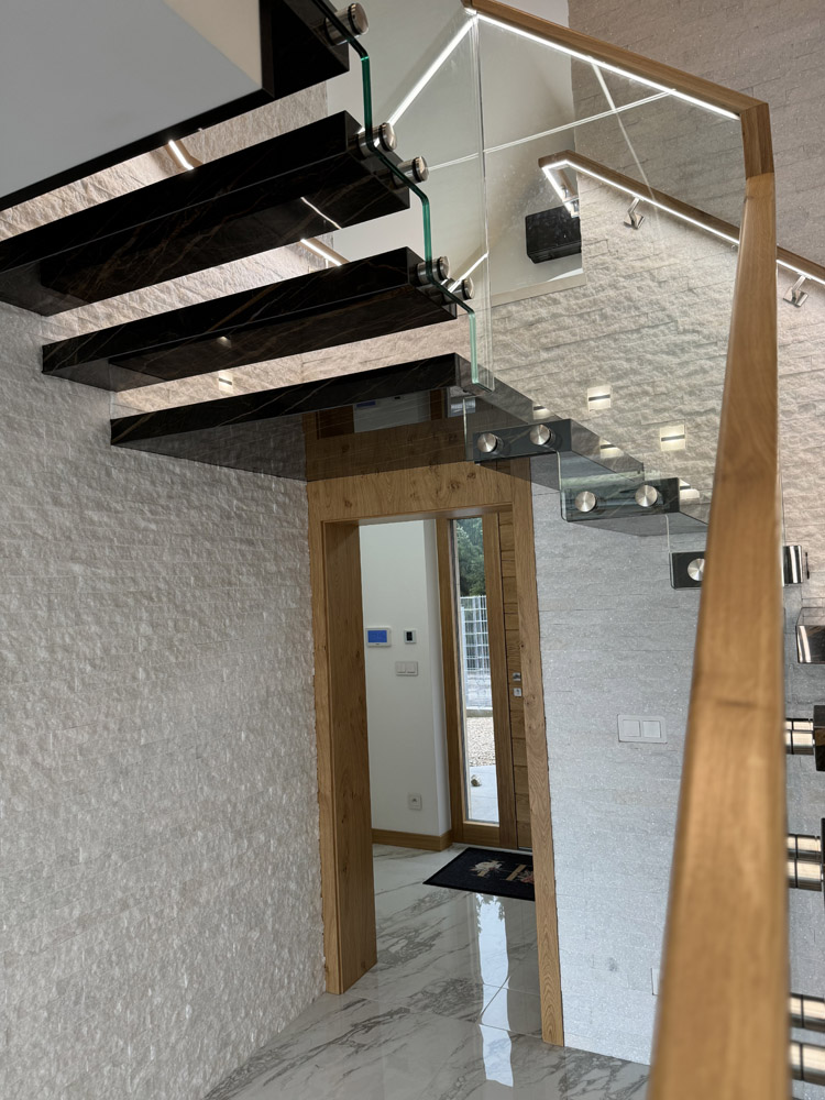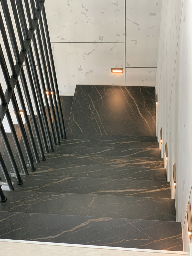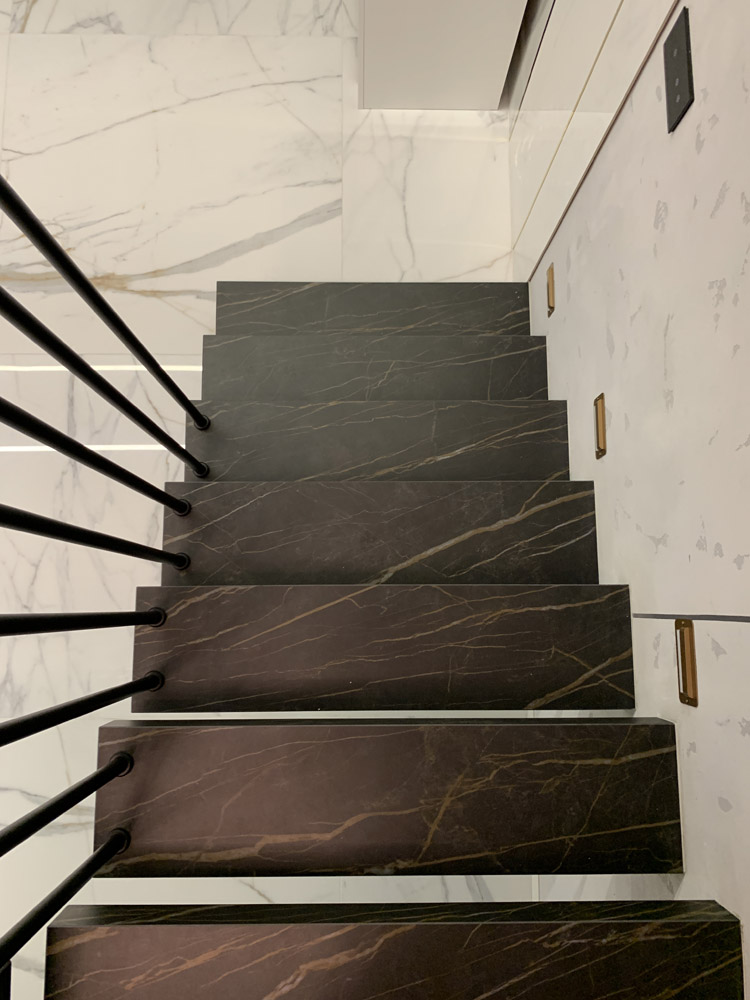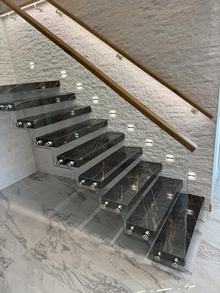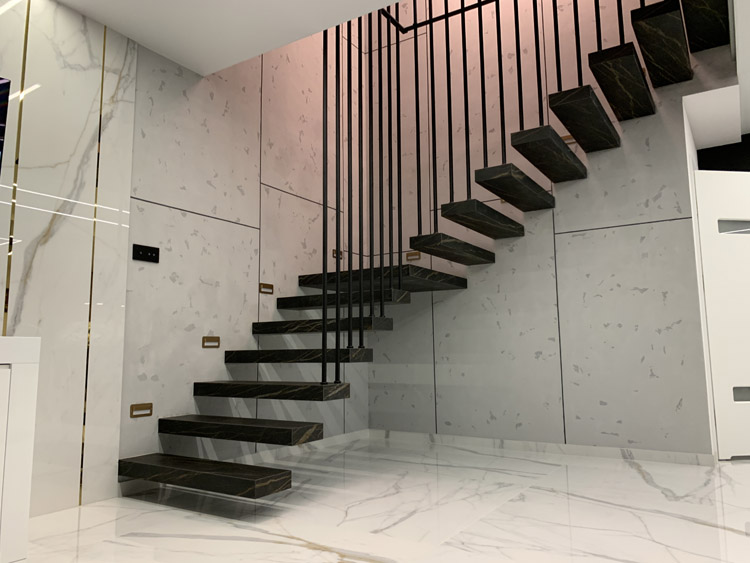 Strep - nowoczesne schody półkowe ze spieku kwarcowego