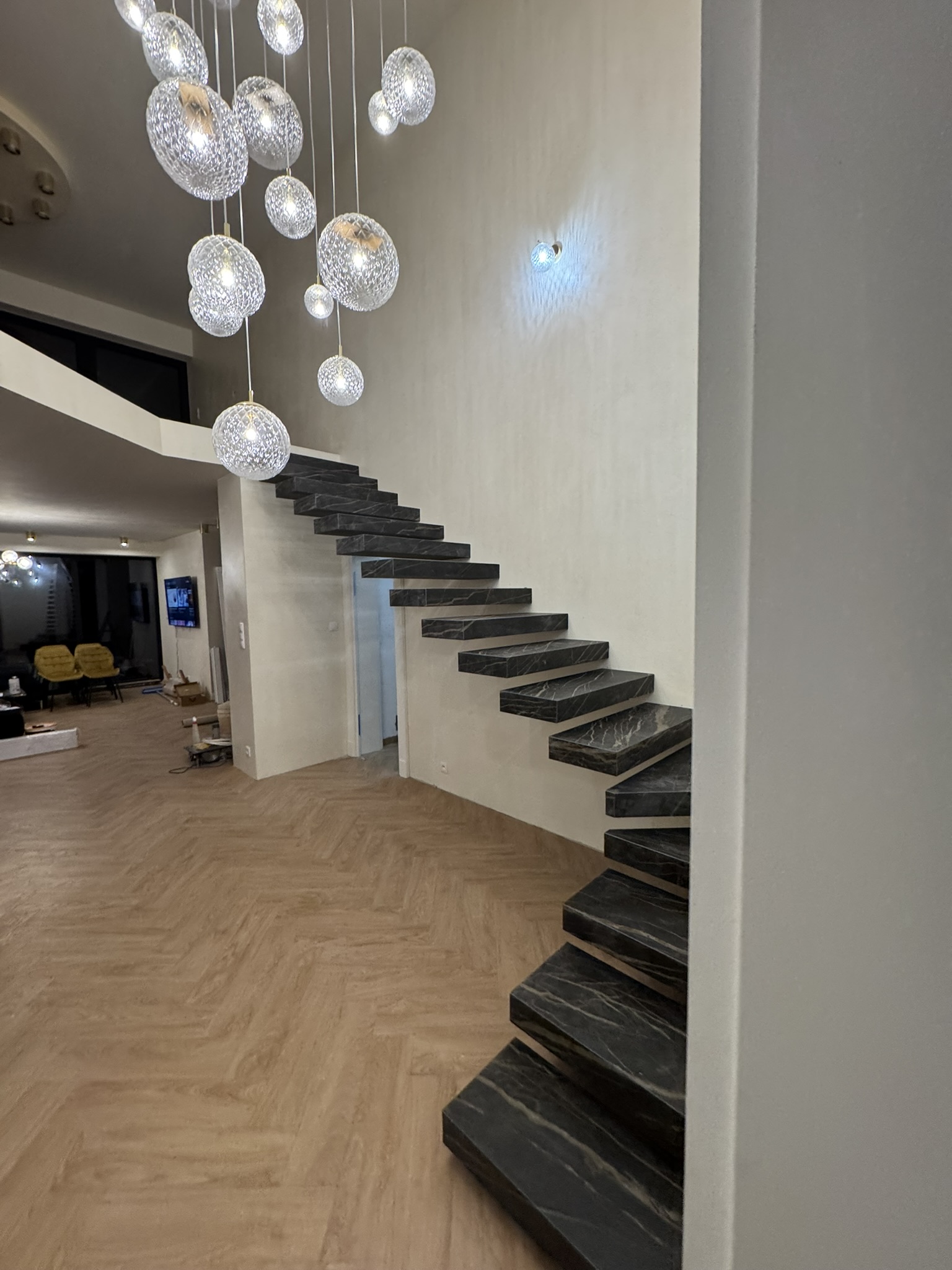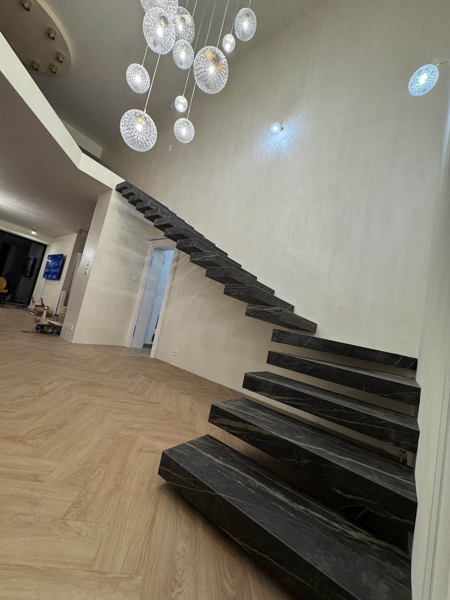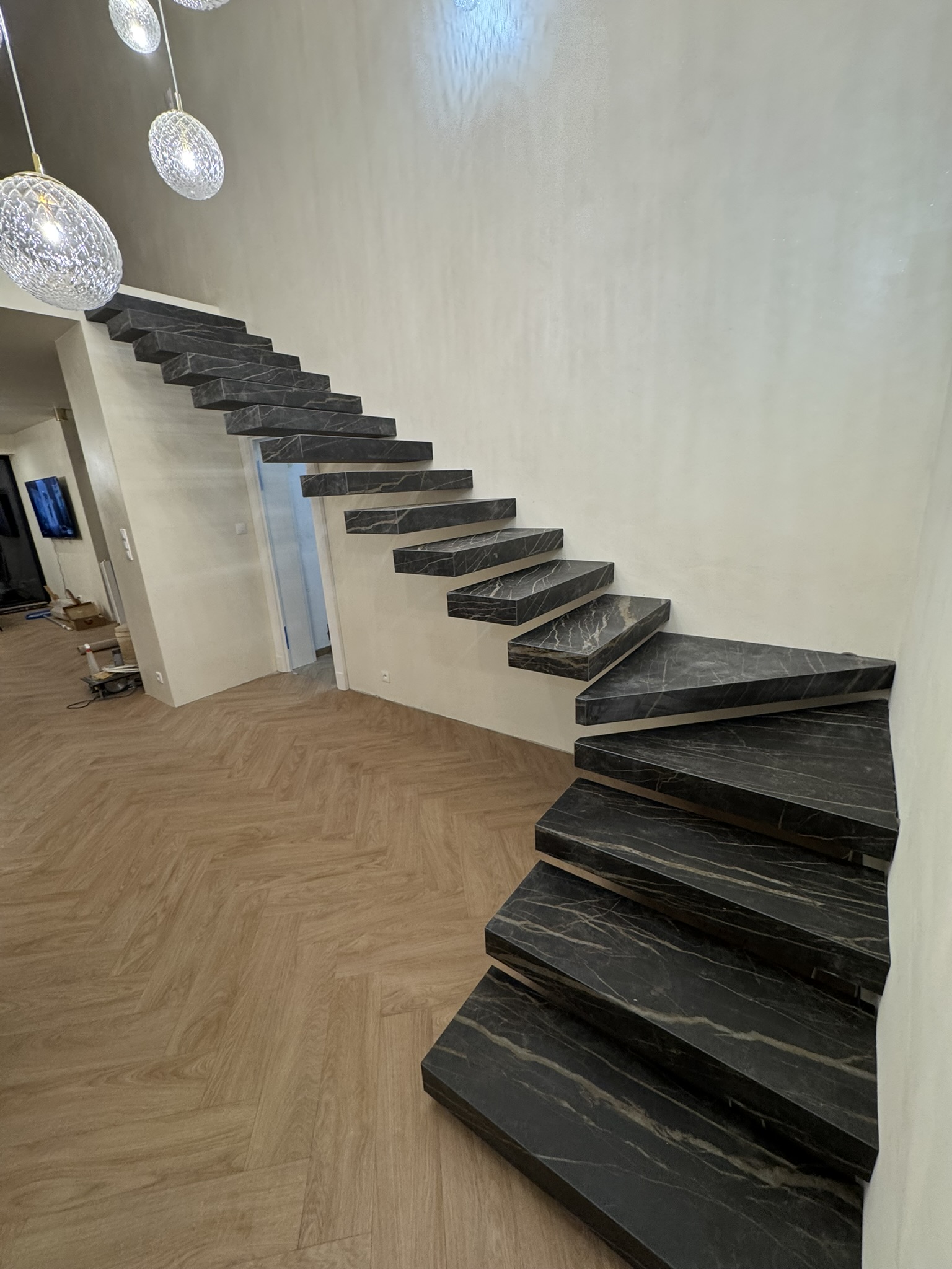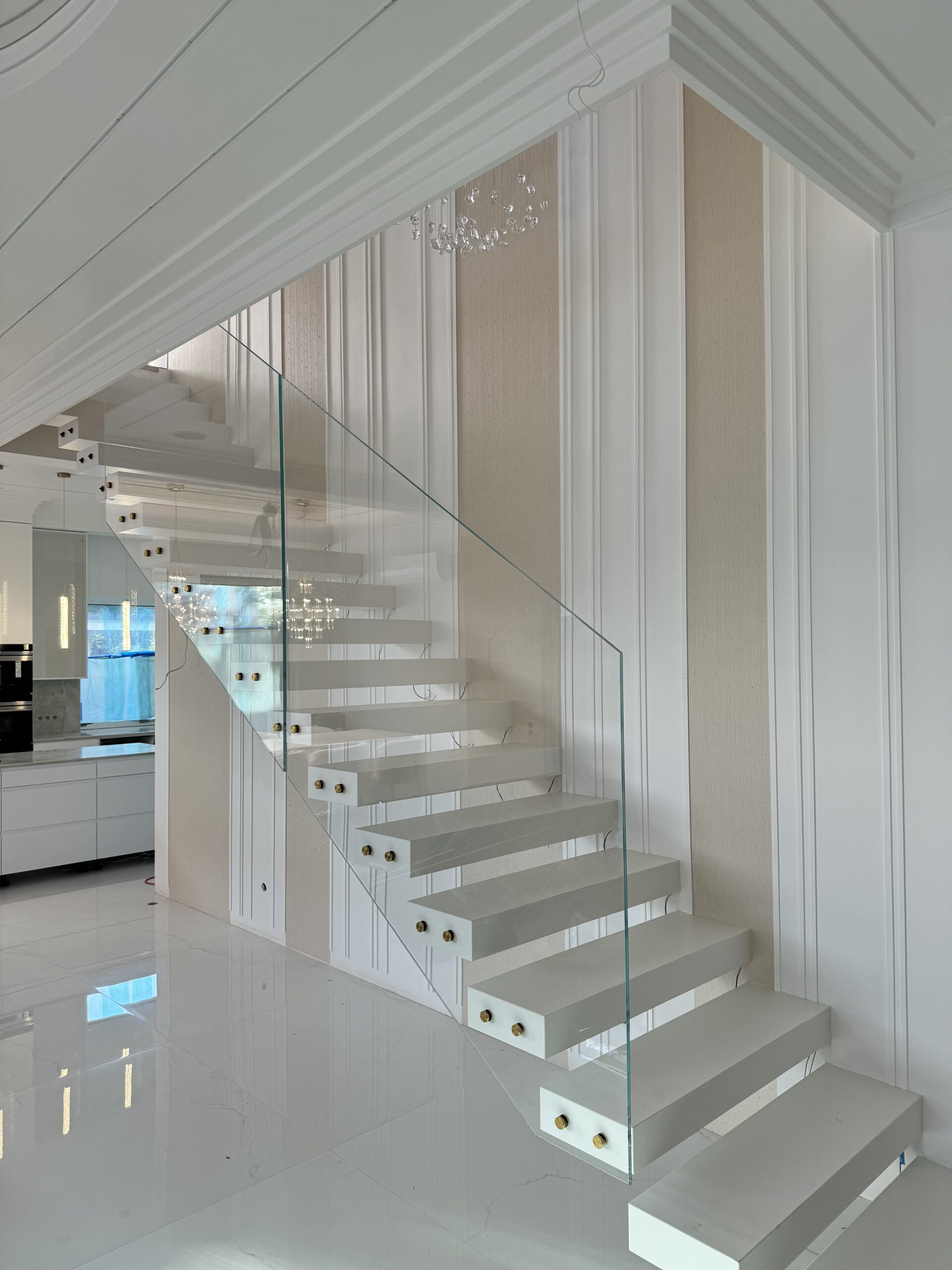 Strep - nowoczesne schody półkowe ze spieku kwarcowego